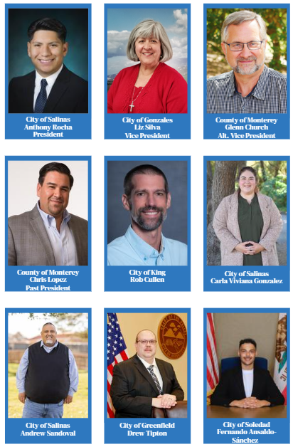 Board Alternates: Luis Alejo, County of Monterey; Orlando Osornio, City of Salinas; Scott Funk, City of Gonzales; Maria Corralejo, City of Soledad; Rachel Ortiz, City of Greenfield; Oscar Avalos, City of King