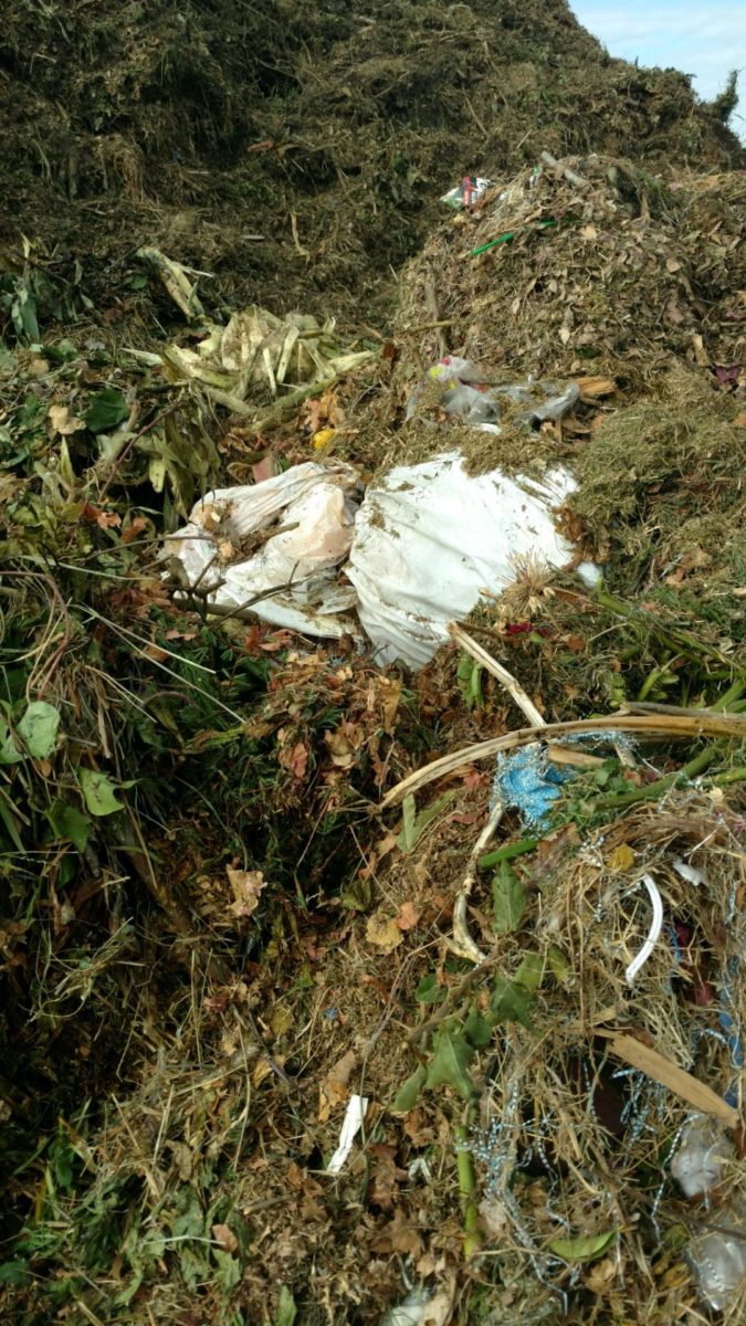 Contaminated yard waste causes extra processing labor and possible rejection of loads (a rejected load goes to the landfill). These images are from contaminated loads at Johnson Canyon Composting Facility.